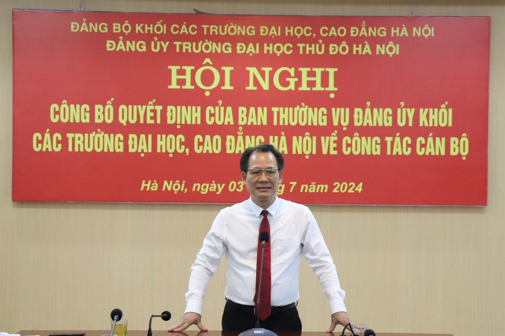 Tại Hội nghị, đồng chí Nguyễn Thanh Sơn, Bí thư Đảng ủy Khối các trường Đại học, Cao đẳng Hà Nộ đã trao quyết định của Ban thường vụ Đảng ủy Khối chỉ định đồng chí Nguyễn Anh Tuấn, Chủ tịch Hội đồng trường Trường Đại học Thủ đô Hà Nội giữ chức vụ Phó Bí thư Đảng ủy Nhà trường, đồng thời gửi lời chúc mừng tới cá nhân đồng chí Nguyễn Anh Tuấn cũng như tập thể Đảng ủy Nhà trường. Đồng chí Nguyễn Thanh Sơn nhận định, trong thời gian tới, Trường Đại học Thủ đô Hà Nội cần gắn liền quá trình tự chủ đại học với hoạt động quản trị đại học. Do đó, sự lãnh đạo của Đảng ủy, sự phối kết hợp giữa Hội đồng trường và Ban Giám hiệu Nhà trường giữ một vai trò hết sức quan trọng. Đồng chí Nguyễn Thanh Sơn tin tưởng, với quá trình học tập, rèn luyện, trưởng thành, trải qua nhiều lĩnh vực công tác, đồng chí Nguyễn Anh Tuấn trên cương vị Phó Bí thư Đảng ủy Trường Đại học Thủ đô Hà Nội sẽ tiếp tục nỗ lực phấn đấu, hoàn thành tốt nhiệm vụ được tổ chức phân công.